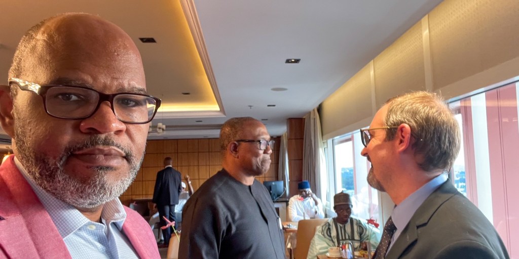 I met Peter Obi (center) in September 2022 in Abuja.