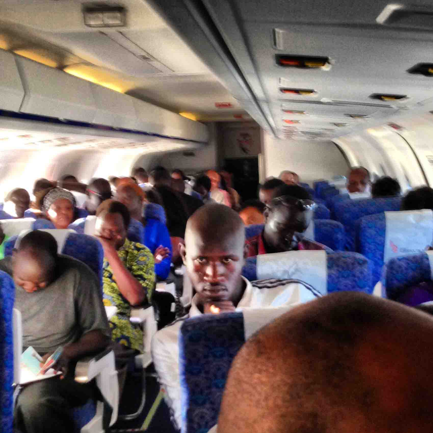 High in the African sky. Most of the people on our flight were dual passport holders – South Sudan and USA. But after a few terrifying few days, we were on our way to Nairobi.