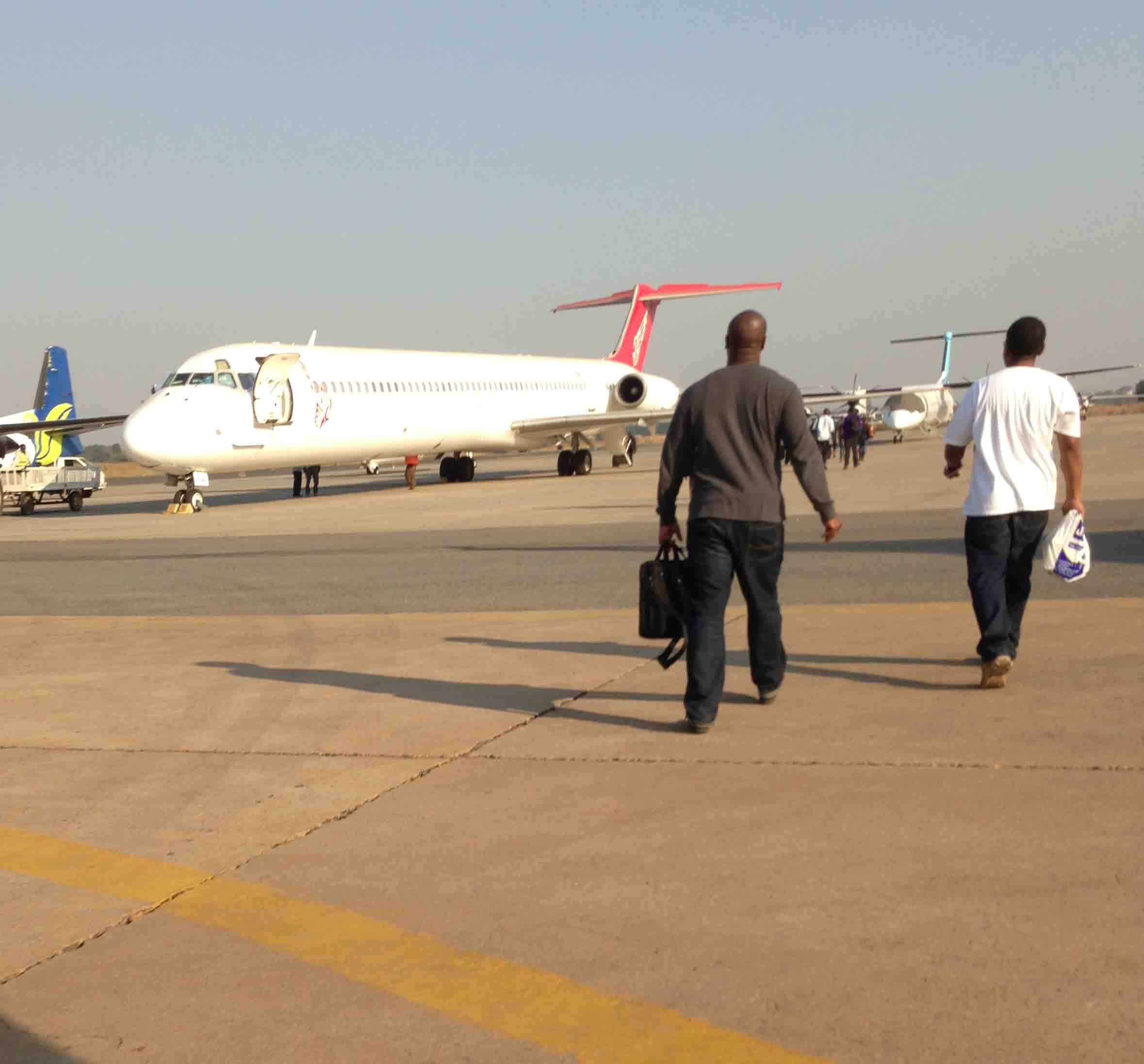 Walking out to the airplane that the American government had organized to evacuate American citizens. Next stop – Nairobi.