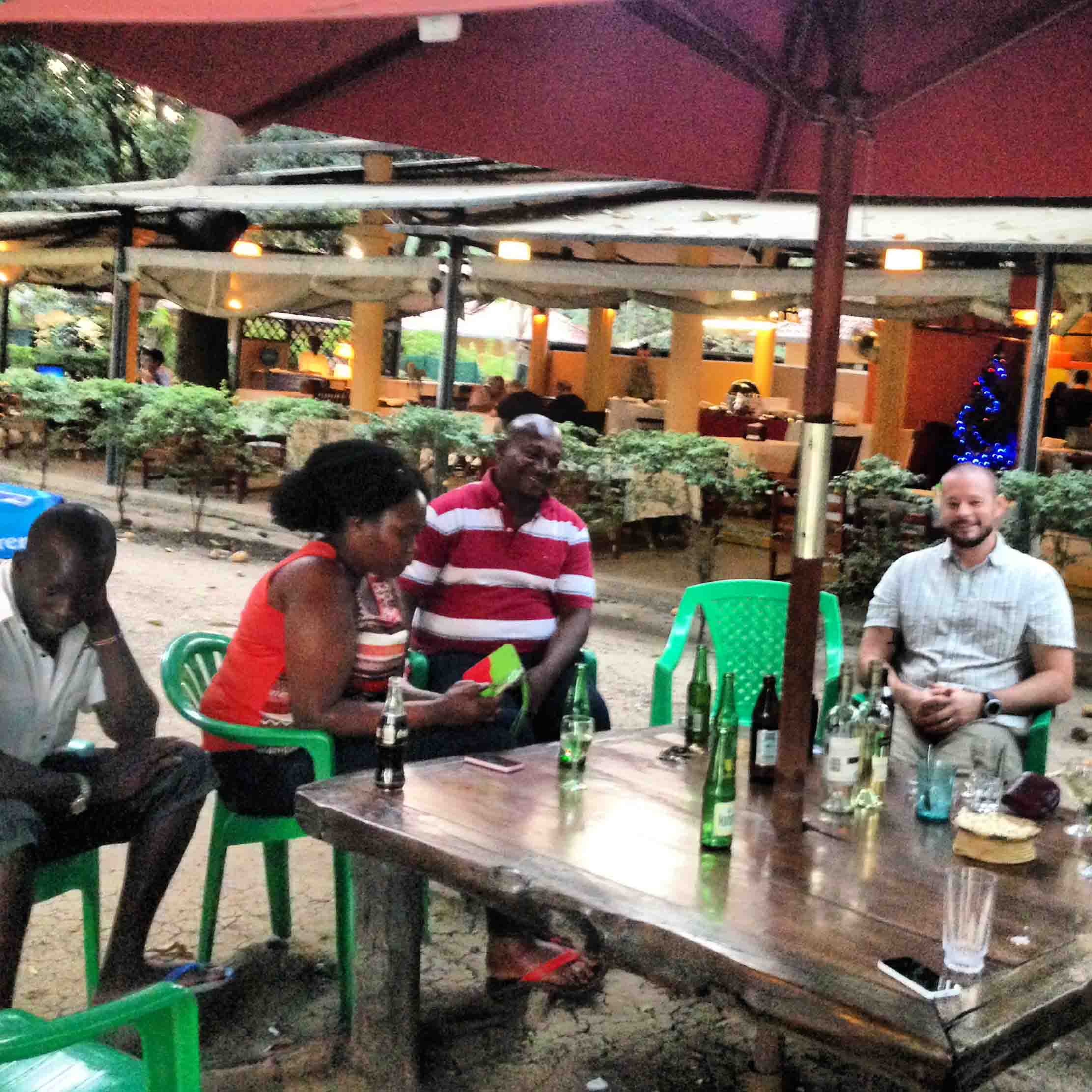 My coworkers and I having dinner as we await news about the situation in Juba and the evacuation process.